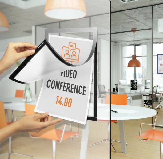 Az újrahasznosított PET-ből készült infótartók fenntartható megoldást kínálnak az információk rugalmas bemutatására. Az öntapadós vagy mágneses rögzítési lehetőséggel az infótartók könnyen rögzíthetők fém, sima vagy akár egyenetlen felületekre is. Oldalirányú behelyezésüknek köszönhetően a dokumentumok gyorsan és egyszerűen cserélhetők.