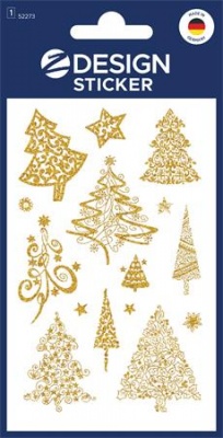 Matrica, papír, 1 ív, 76x120 mm, AVERY ZWECKFORM, "Z-Design No.52273", arany fenyőfák