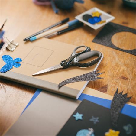 A Fiskars iskolai olló kifejezetten 12 éves és idősebb gyermekek számára készült, akik igényesebb munkákat szeretnének elvégezni.-hosszabb pengékkel, hegyes heggyel a pontosabb vágáshoz-az ergonomikus fogantyút úgy alakították ki, hogy illeszkedjen a nagyobb gyerekek és a tinédzserek kézének természetes formájához és mozgásához-a kiváló minőségű rozsdamentes acél pengék hibátlan vágásokat biztosítanak a vékonyabb és vastagabb anyagokon egyaránt-vidám csillogó részletekkel díszített